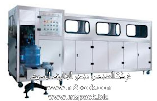 خط أوتوماتيكي لغسيل وتعبئة عبوات الديسبنسر 19 لتر التي نقدمها نحن شركة المهندس منسي للتعبئة والتعليف الحديث M2Pack.com