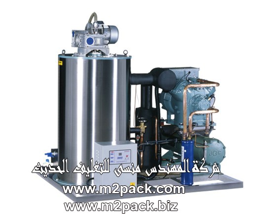 آلة صناعة الثلج بشكل رقائق بطاقة إنتاجية 1 طن / يوم التي نقدمها نحن شركة المهندس منسي للتغليف الحديث M2Pack.com