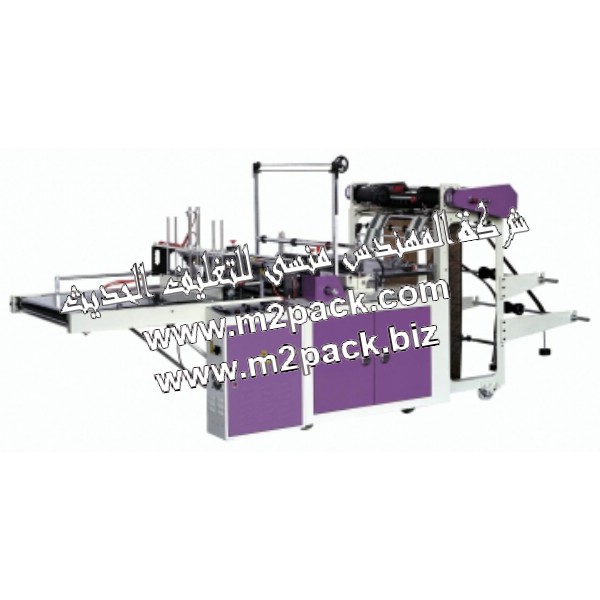 آلة قص وختم الكترونية و أوتوماتيكية عالية السرعة بطبقتين للحقائب المختومة من الأسفل وللأكياس الشبيهة بأكياس الشيال التي نقدمها نحن شركة المهندس منسي للتغليف الحديث M2Pack.com