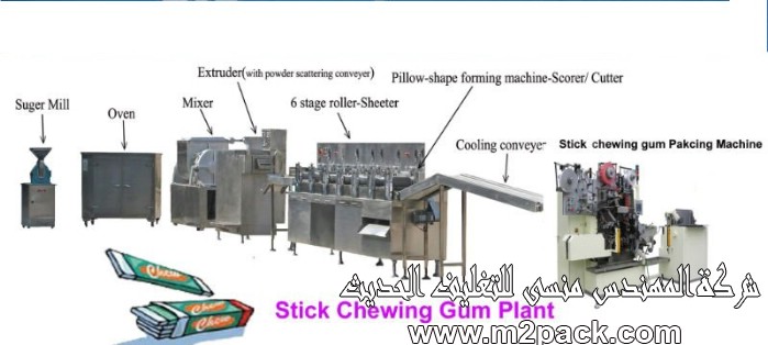 الوصف العام لخط إنتاج العلكة النفاخة المتعددة الألوان التي نقدمها نحن شركة المهندس منسي للتعبئة والتغليف الحديث M2Pack.com